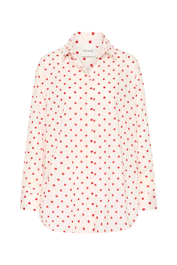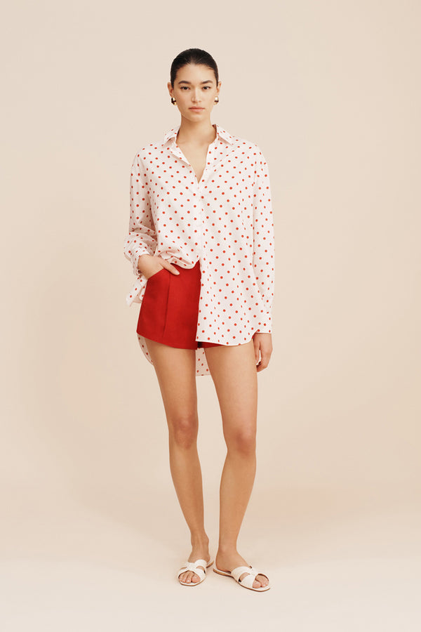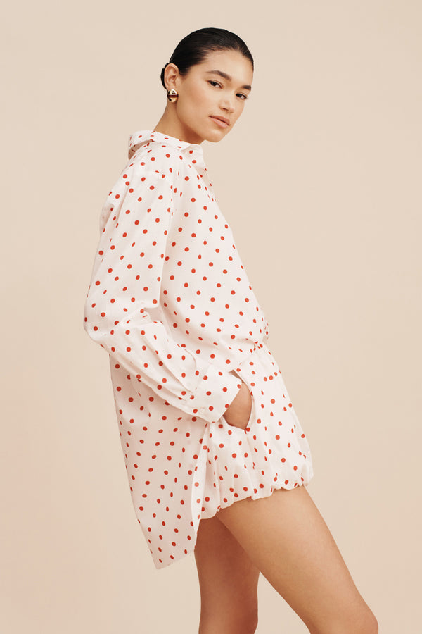 Patterned with classic polka-dots, the Paloma Pants are crafted from a luxurious tencel blend. They're designed to sit high on the waist before falling to flared hems. Style yours as a set with the matching Paloma Shirt.
