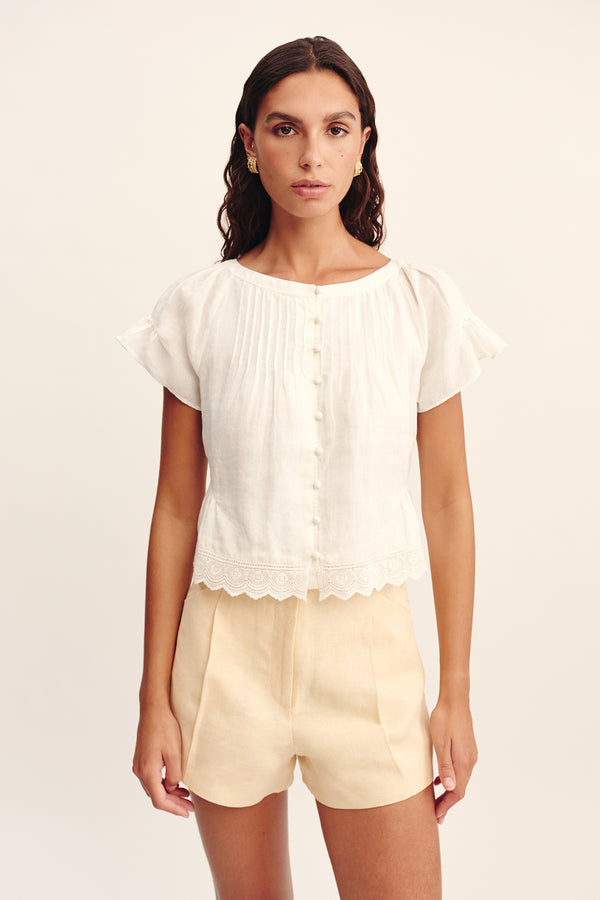 Crafted from premium linen, the Rosalie Shorts are pleated at the front to create shape through the legs. Styles yours as a set with the matching Nancy Gilet.